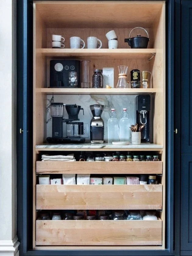 From teas to spices to espresso cups, everything has a place and therefore everything looks in place. via Hunker